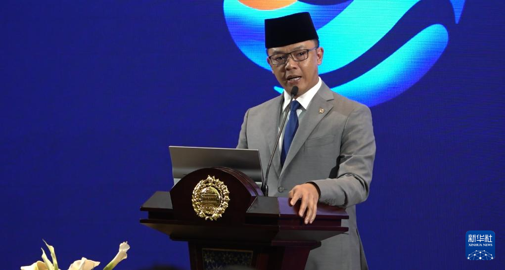这张视频截图显示,1月14日,印度尼西亚外交部长苏吉约诺在印度尼西亚雅加达发表讲话。苏吉约诺表示,强权国家公开奉行双重标准正侵蚀国家间信任,当前世界秩序面临严峻挑战。新华社发(瓦扬摄)