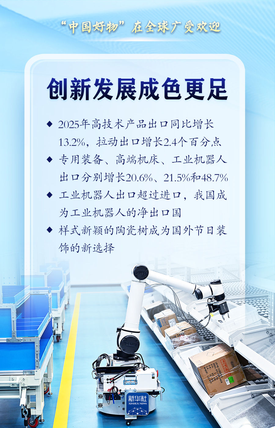 在14日上午国务院新闻办公室举行的新闻发布会上,海关总署介绍,2025年我国出口顶住逆风逆流,规模达到26.99万亿元,同比增长6.1%。量的合理增长,源自质的有效提升。“中国好物”在全球范围内广受欢迎,为保障全球产供链稳定发挥了重要作用,也为全球经贸发展注入了确定性、带来了新机遇。