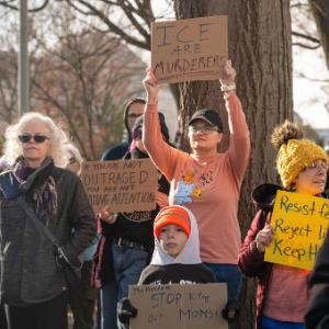 1月11日,在美国首都华盛顿,民众抗议移民与海关执法局暴力执法。新华社发(李源清摄)