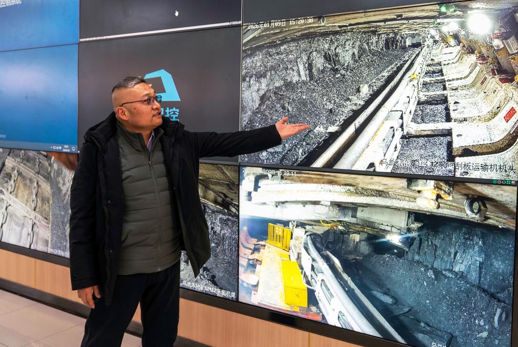 2026年1月9日,丁明磊在监控室查看井下采煤情况。新华社记者 李云平 摄