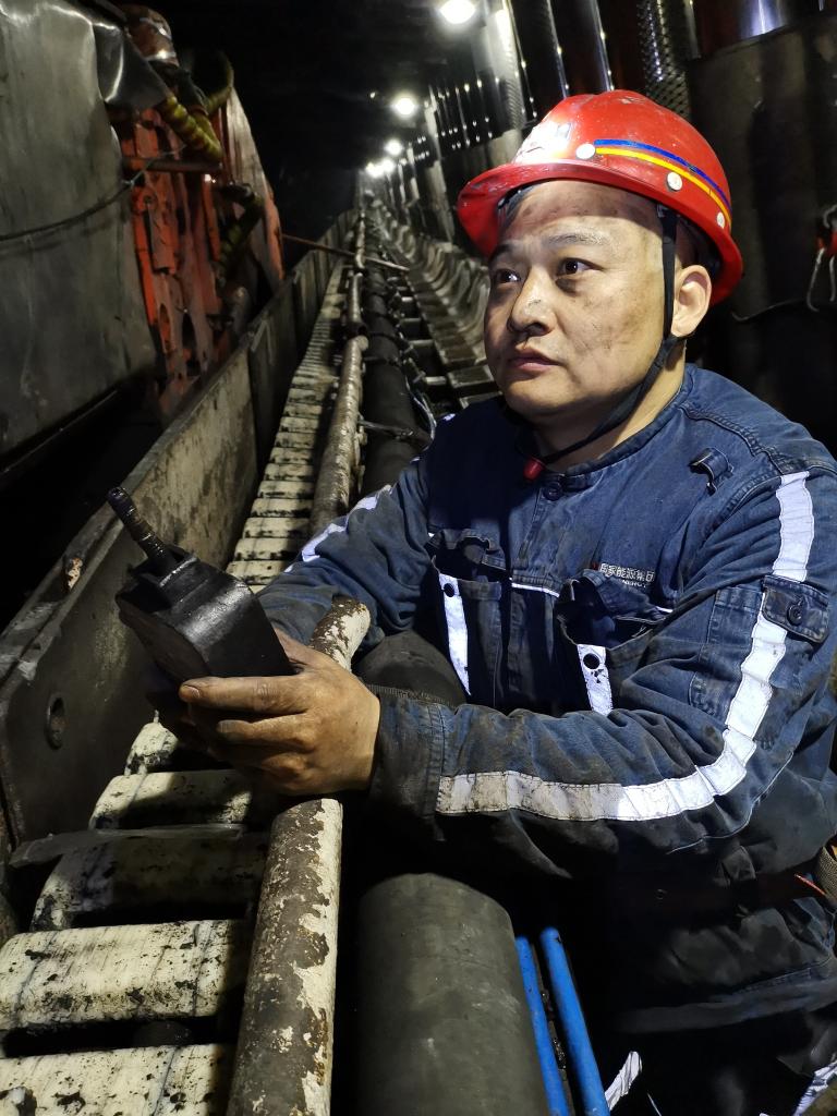 在综采工作面,丁明磊手持遥控器,巨大的采煤机缓缓移动,伴随着滚筒的旋转,一块块煤炭从乌黑坚硬的煤层纷纷剥落,随着刮板输送机源源不断运往地面。