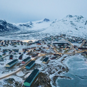 这是2025年3月21日拍摄的丹麦自治领地格陵兰岛纳尔萨克镇(无人机照片)。新华社记者彭子洋摄