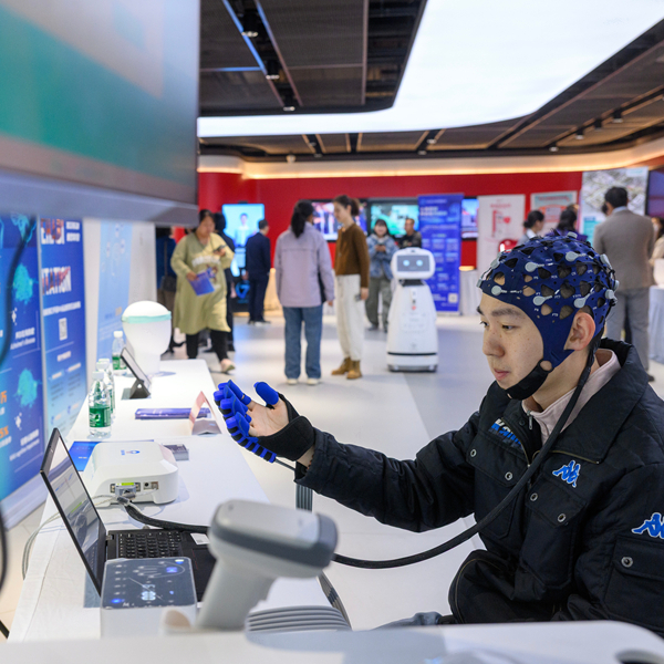 “通俗来讲,脑机接口就像是在大脑和外部设备(比如电脑、假肢、轮椅等)之间搭建的‘直接通信桥梁’。”中国信息通信研究院知识产权与创新发展中心主任李文宇介绍,“我们的大脑思考、产生意念时,会发出微弱的电信号,脑机接口能捕捉到这些信号,经过解码转化成机器能读懂的指令,进而操控设备,同时也能将外部设备的信息转化为大脑可感知的信号反馈给人体。”