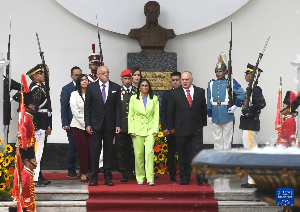 1月15日,在委内瑞拉首都加拉加斯,委内瑞拉代总统德尔西·罗德里格斯(前)发表国情咨文。新华社发(马科斯·萨尔加多摄)