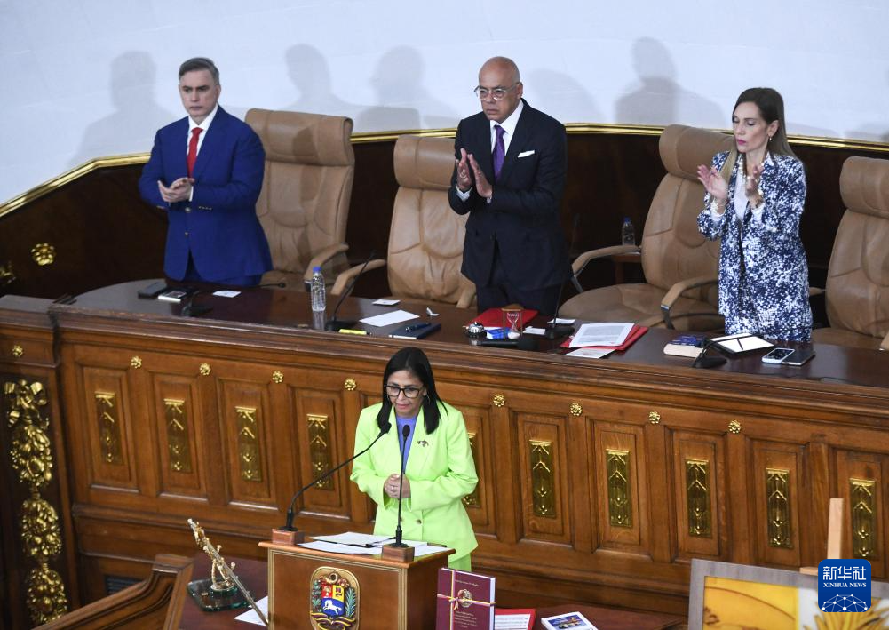 1月15日,在委内瑞拉首都加拉加斯,委内瑞拉代总统德尔西·罗德里格斯发表国情咨文。新华社发(马科斯·萨尔加多摄)