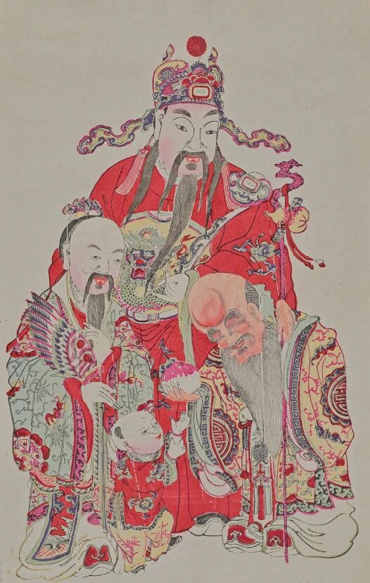 展出的桃花坞年画福禄寿三星。 新华社发