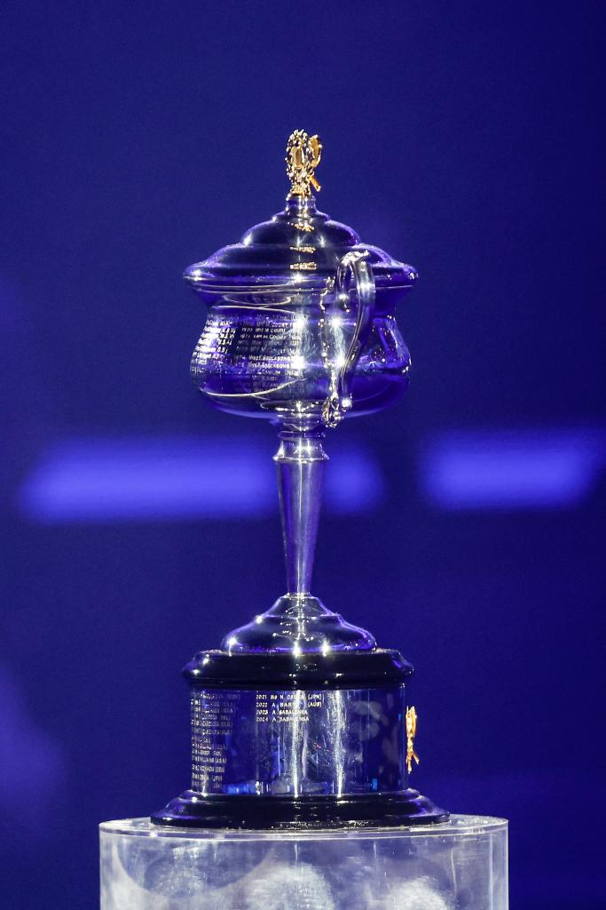 ↑2025年1月25日拍摄的澳网女单冠军奖杯。新华社记者 马平 摄