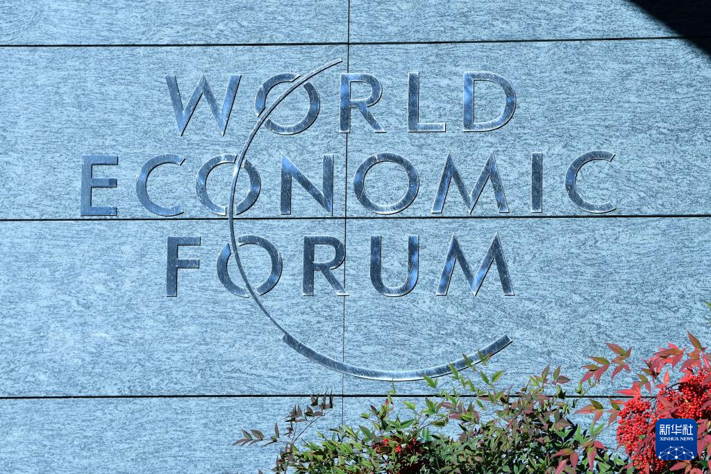 这是1月14日在瑞士日内瓦世界经济论坛总部拍摄的世界经济论坛标识。 新华社记者 连漪 摄