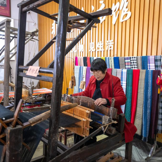 这几天,陶文成格外高兴,他筹备许久的1600平方米红安大布产业化示范和研学基地正式开业了,新场地有织机40多台,吸纳长胜街周边百余位留守妇女加入。