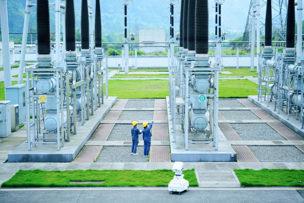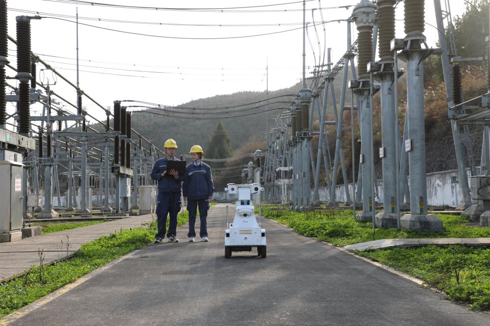 在铜仁市沿河县220千伏青山变电站,南方电网贵州铜仁供电局工作人员正在用机器人开展巡视工作。(陈丽玲摄)