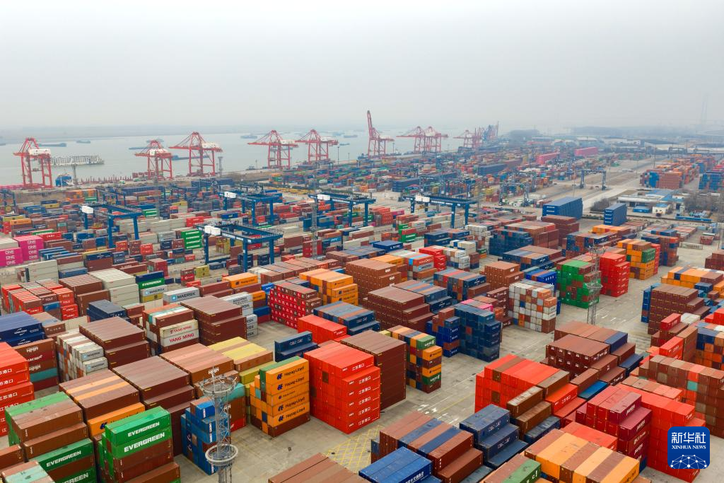 1月18日拍摄的江苏省港口集团南京港龙潭集装箱码头(无人机照片)。