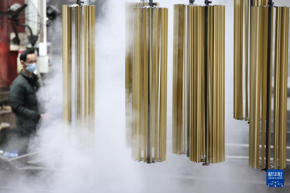 1月19日,工人在位于浙江省湖州市德清县乾元镇的浙江沃德新材料科技有限公司车间赶制铝型材产品订单。