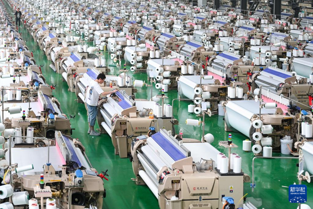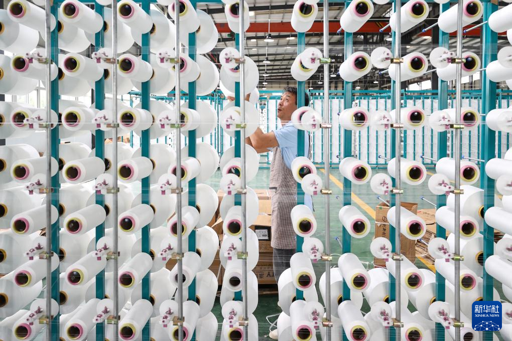 2025年8月19日,工人在贵州省毕节高新技术产业开发区毕节宏盛纺织科技有限公司纺织车间进行生产作业。