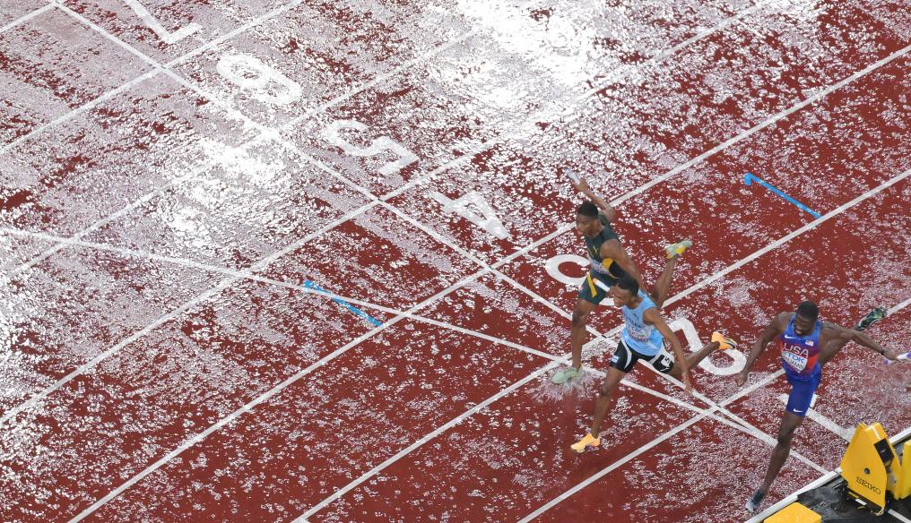 比赛结果也颇具戏剧性,博茨瓦纳队以0.07秒的优势绝杀了实力强劲的美国队,拿下冠军。而我也把握住了唯一的机会,拍摄到了冠军队选手在雨中交接棒的画面。