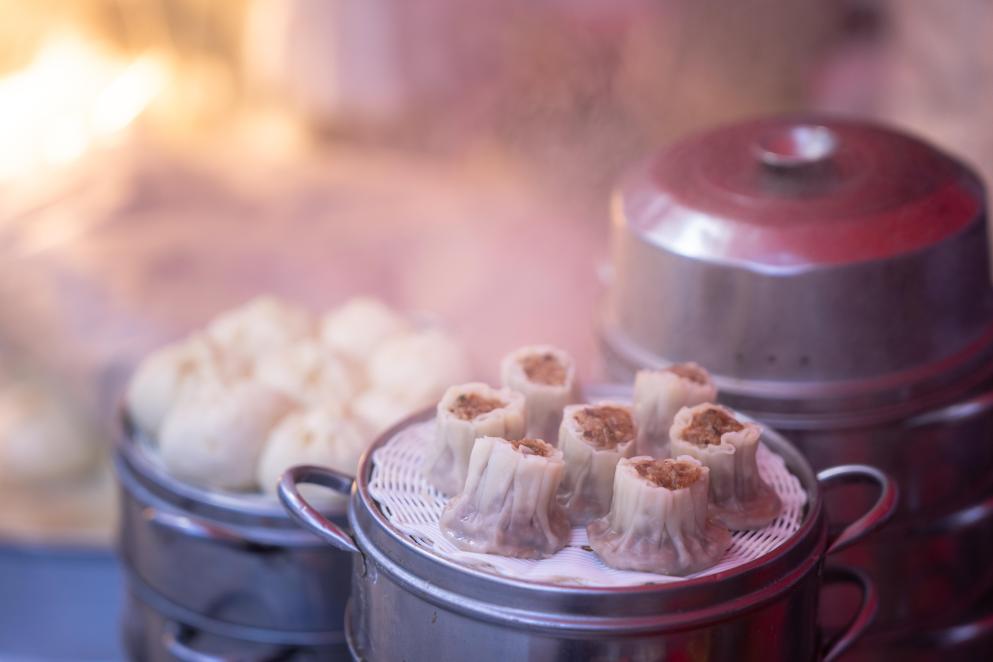 1月14日,在黑龙江省黑河市早市一早餐摊位,热气腾腾的烧麦刚刚出锅。新华社发(赵东来 摄)