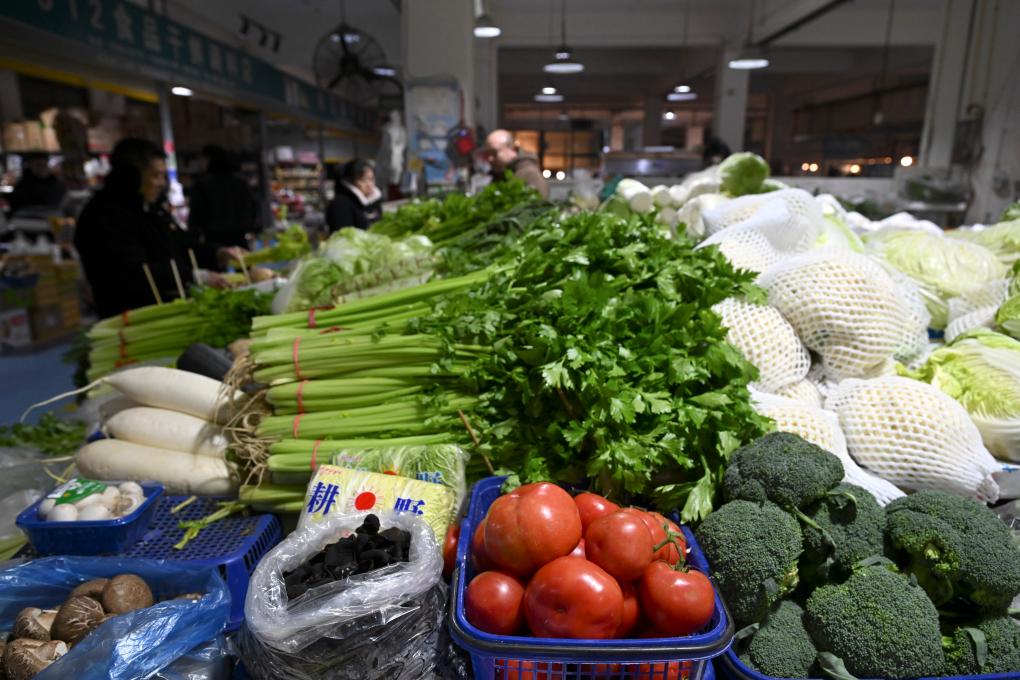 1月19日,在安徽省亳州市光明农贸市场,市民在选购蔬菜。新华社记者黄博涵 摄