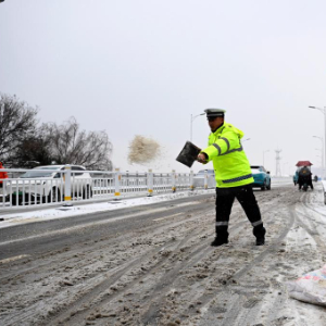 在这渐紧的风雪中,亳州市公安局交管支队谯城魏武大队花戏楼中队中队长史大飞和同事们的身影始终忙碌。“雪情就是警情,保畅关乎民生。”清晨7点不到,他们已在桥上挥舞起铁锹与扫帚,清雪除冰的作业声伴着风雪持续了一整天。