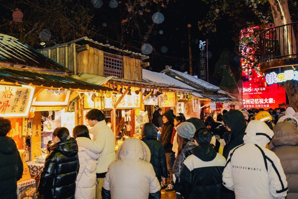 2025年12月31日晚,在郑州记忆1952油化厂创意园朱雀市集,游客在品尝美食并等待新年到来。(受访者供图)