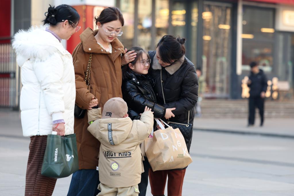 2026年1月12日,一位前来接站的女士(右一)在兰州火车站西出站口与刚下火车的孩子相拥(1月12日摄)。新华社记者 陈斌 摄
