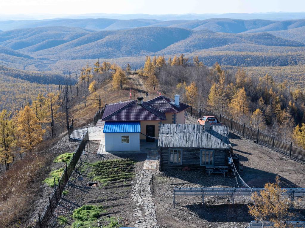 这是2025年9月28日在内蒙古牙克石市摩天岭上拍摄的瞭望员孙忠全的住所。