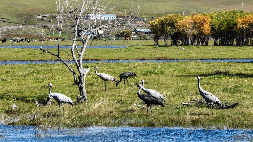 这是2025年9月16日在额尔古纳湿地拍摄的灰鹤。