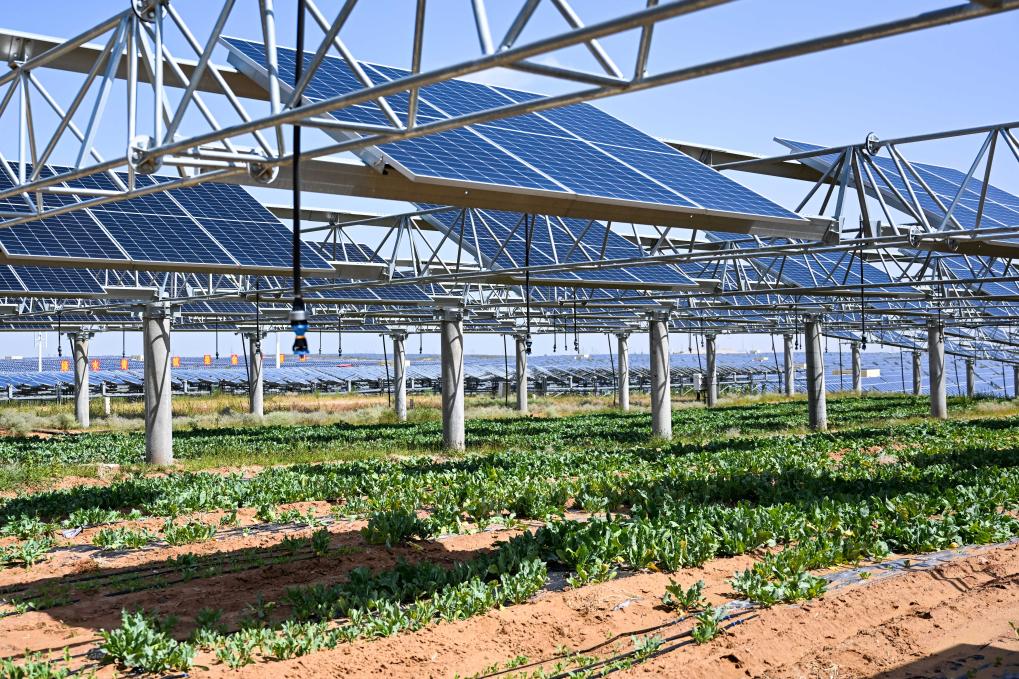 这是在库布其沙漠里的蒙西基地库布其200万千瓦光伏治沙项目区光伏板下种植的农作物(2025年9月3日摄)。 新华社记者 李志鹏 摄