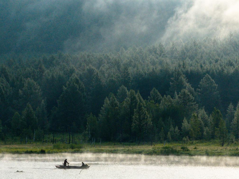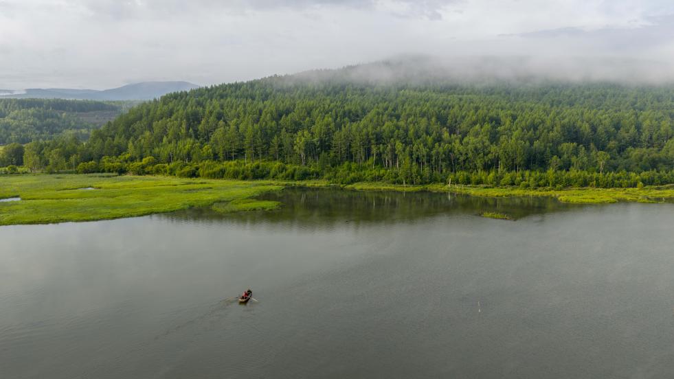 2025年7月28日,一艘渔船在内蒙古兴安盟阿尔山市乌苏浪子湖中。