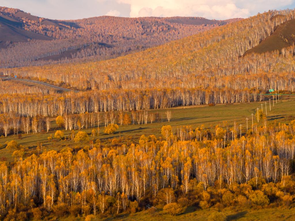 这是2025年9月25日在内蒙古呼伦贝尔市额尔古纳市恩和俄罗斯族民族乡拍摄的白桦林。