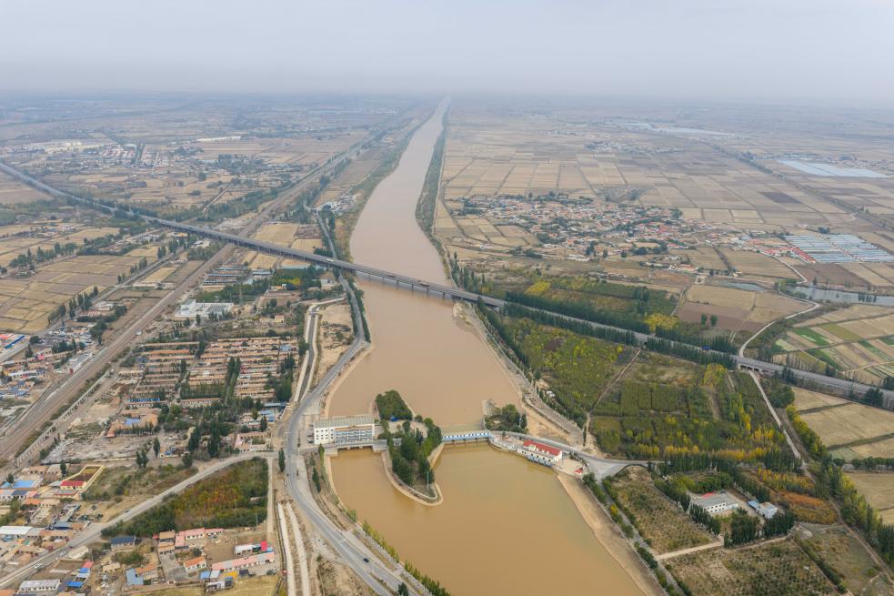 2025年10月16日,用于灌溉的黄河水流经内蒙古巴彦淖尔市磴口县境内的黄河总干渠。