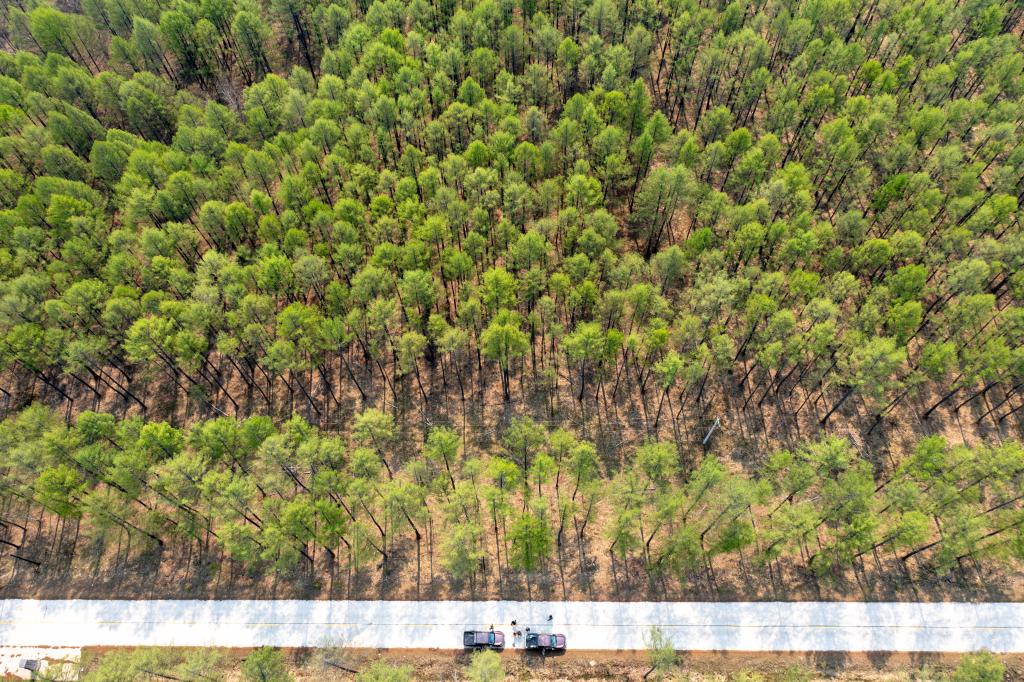 2025年5月21日,在内蒙古呼伦贝尔扎兰屯市柴河口林场,护林员对一片兴安落叶松林进行巡查。
