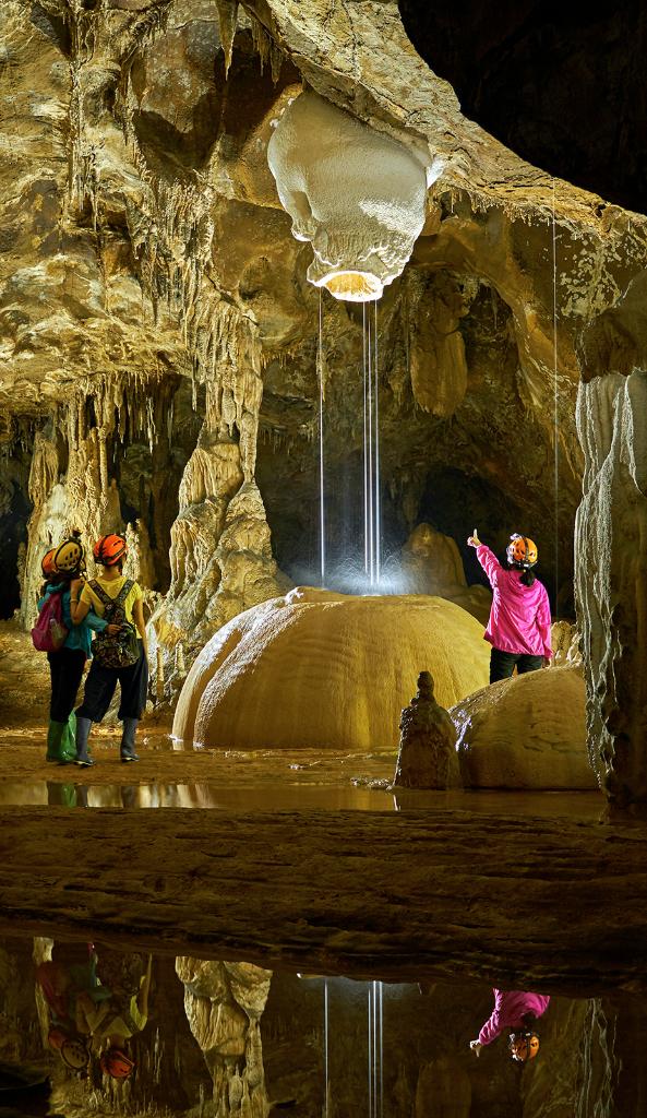 乐业在全球13个超大型天坑中占据7席,而伴随着“探洞”这项活动逐渐进入大众视野,乐业凭借数量众多、分布密集、类型齐备的天坑,搭配庞大的地下河系统、丰富的溶洞群和原始森林,成为备受游客推崇的目的地。