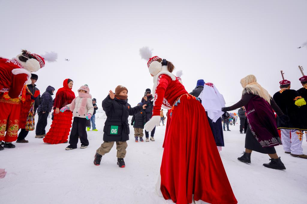 新疆昭苏县湿地公园,演员表演非遗节目。新华社记者 徐宏岩 摄