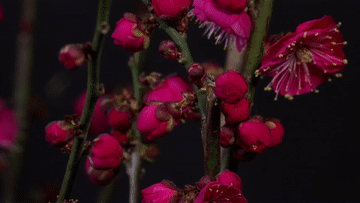 云南省昭通市大关县一名摄影爱好者耗时20天,通过延时摄影记录下乌梅绽放过程。光影流转,绯红的梅苞绽放,黄色的花蕊缓缓舒展,一缕缕暗香浮动,尽显梅花清雅高洁的风骨。