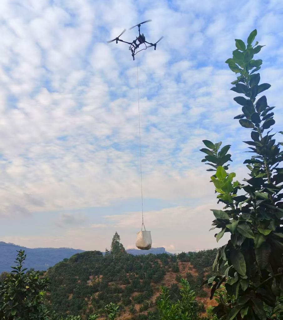 年轻一代也把新的种植和管理方式带回了乡村。沙田柚甜度不到14度不摘果,过去依靠经验或者刺果测糖,现在现代化的技术和设备已经布局到田头。无人机吊运、轨道车、加工车间也都进了果园。