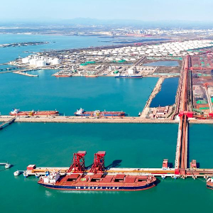 在山东青岛拍摄的山东港口青岛港第二座40万吨矿石码头(2025年10月27日摄,无人机照片)。新华社发(张进刚摄)