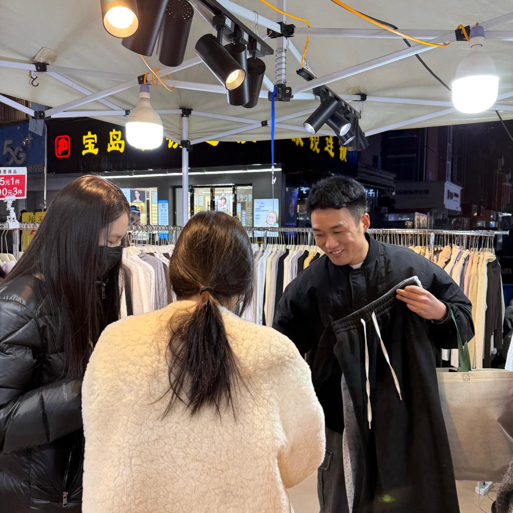 自去年从河南来到义乌,他便开始了双线奋斗:白天帮舅妈看店,晚上自己当老板。主营打底衫、打底裤的小摊,开业4个多月来,日均收入约800元,一笔百余条秋裤的复购订单更是给了他莫大鼓舞。