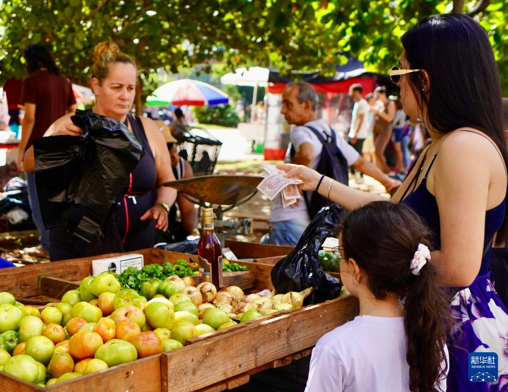 1月24日,在古巴首都哈瓦那的一处集市,一名女子购买蔬果。新华社记者 蒋彪 摄