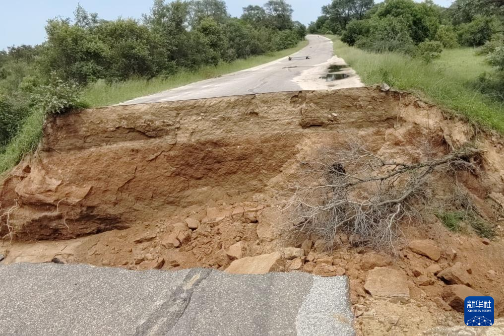 这是1月23日在南非克鲁格国家公园拍摄的一条被洪水损毁的道路。新华社发(南非国家公园管理局供图)