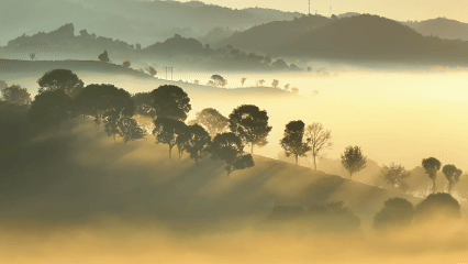晨雾缠绵于茶垄之间,暖阳斜照时,雾霭中透出缕缕金光,与千年茶园弥漫的清香交织,勾勒出一幅幅独特景致。