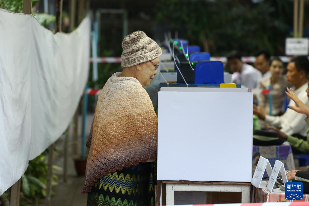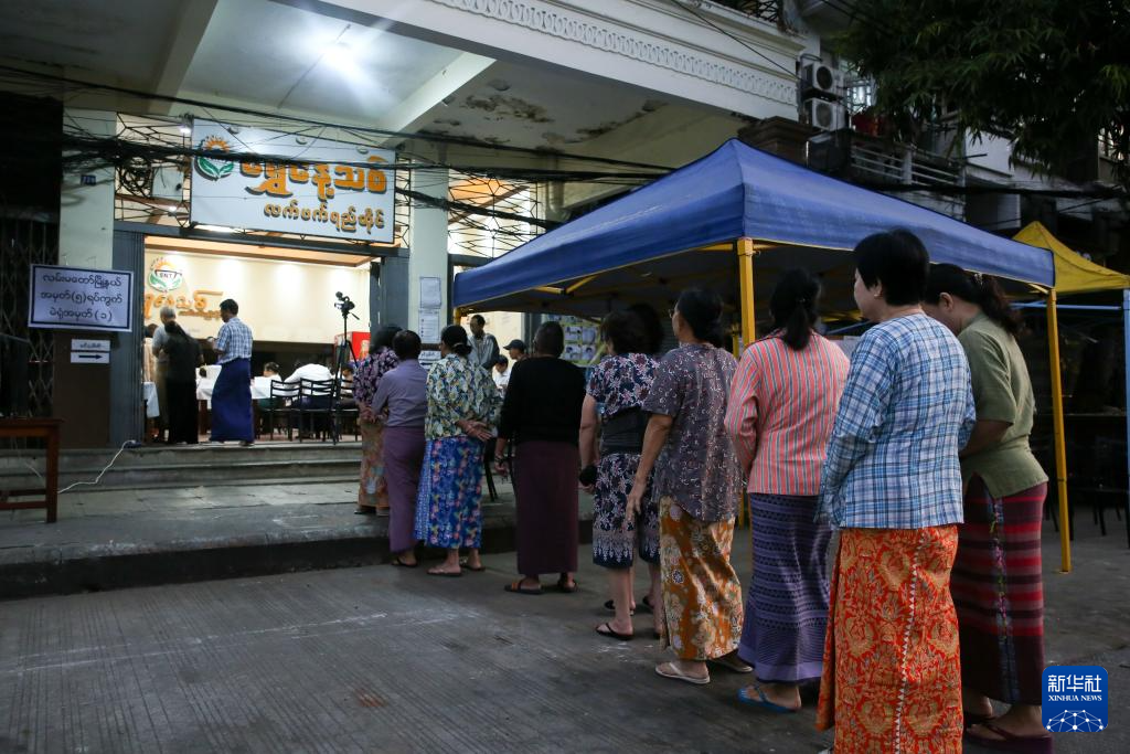 1月25日,选民在缅甸仰光省的一处投票站参加投票。新华社发(苗觉梭摄)