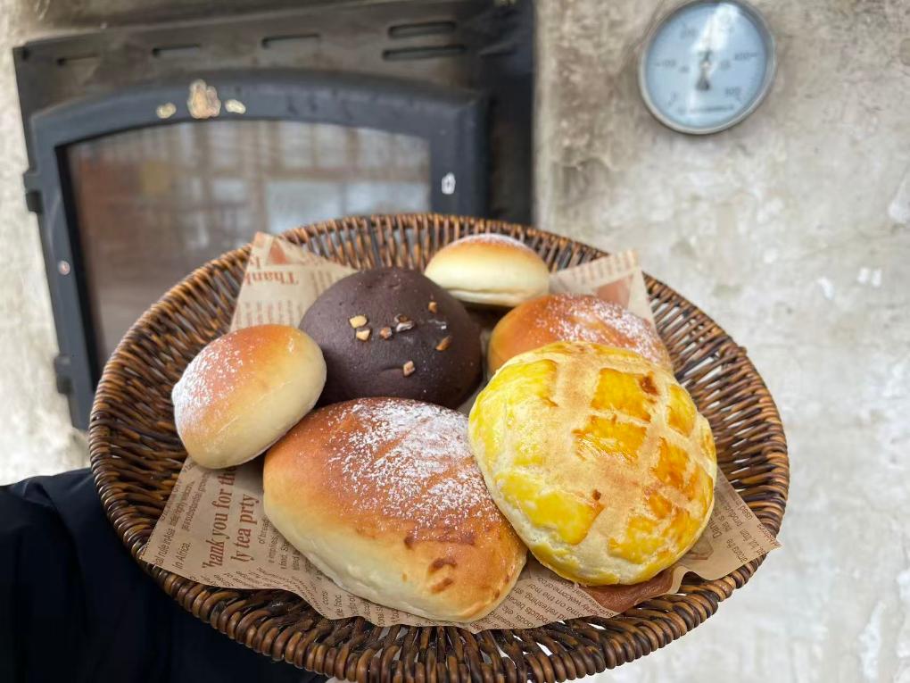 杨巧利用传统窑烤技艺烘焙的面包,香气四溢,很受游客喜爱。受访者供图。