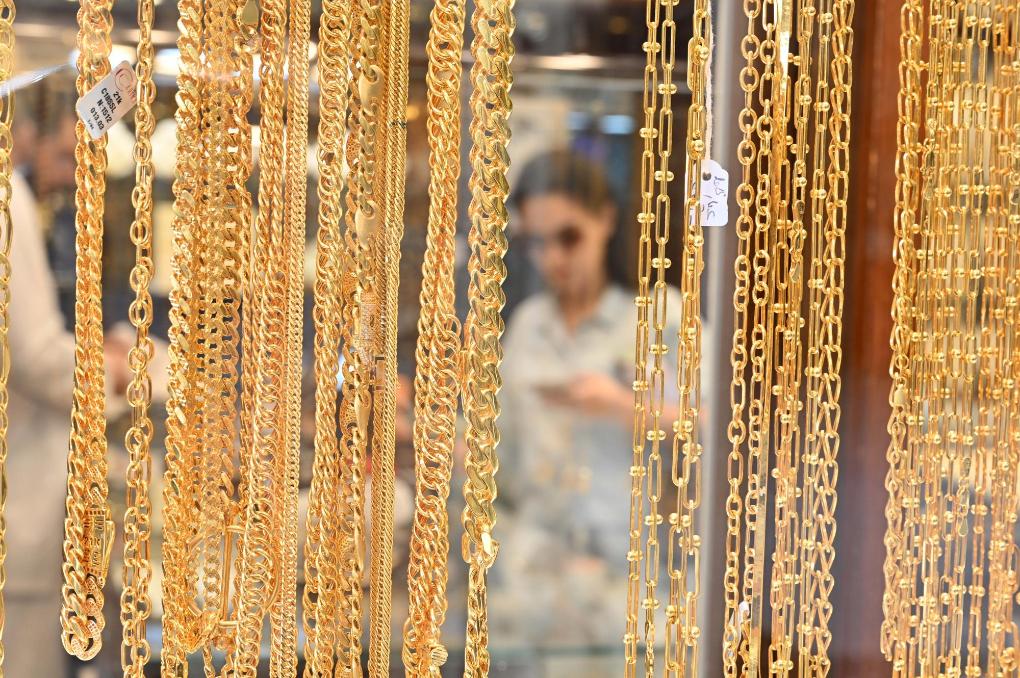 这是2025年10月23日在科威特首都科威特城一家金店内拍摄的黄金饰品。新华社发(阿萨德摄)