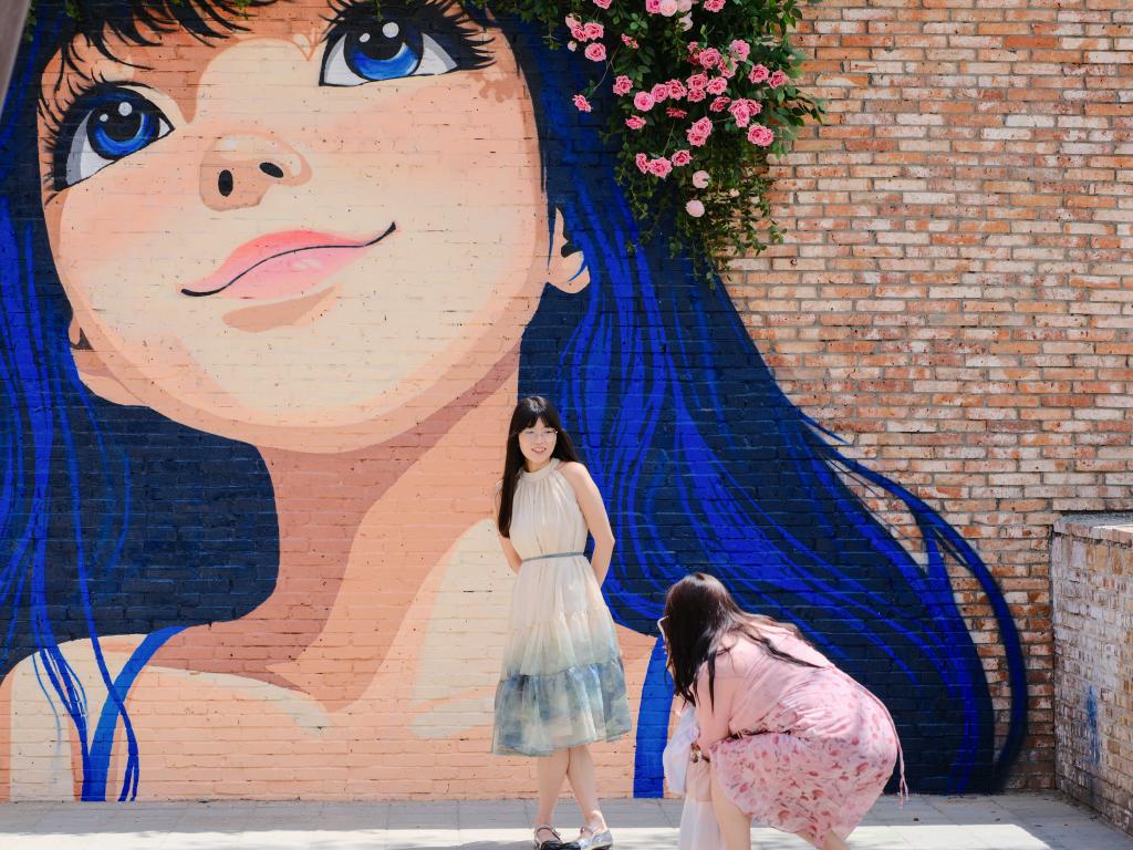 2025年6月22日,游客在“包棉1958”主题文化街区打卡拍照。新华社记者 马金瑞 摄