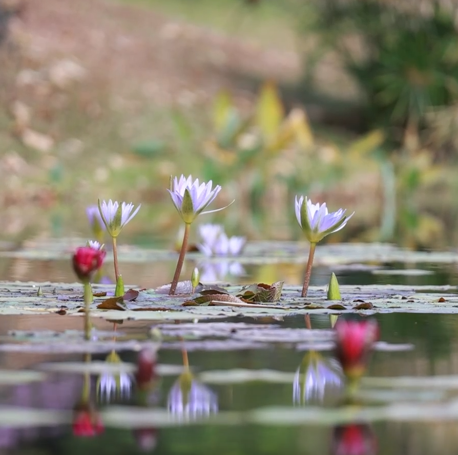 腊月时节,在广州市云溪植物园睡莲专类园,各种睡莲依然烂漫绽放,争奇斗艳。