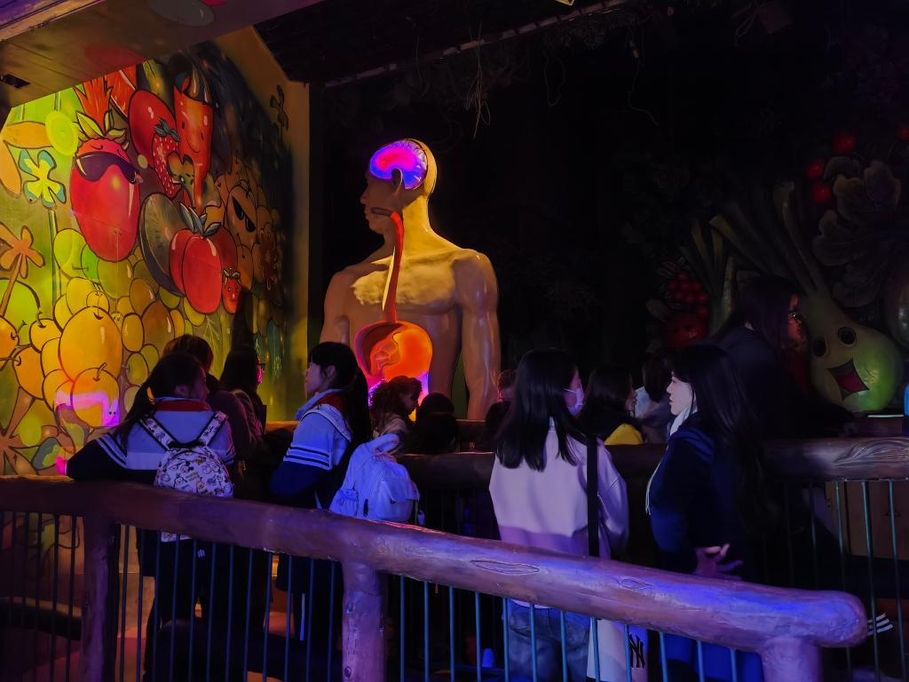 1月27日,观众在上海科技馆“神奇的我”展区排队等待体验“食物的旅行”。这是上海科技馆的经典展项,也因广大观众呼声颇高在此次更新升级中得以保留。新华社记者 陈爱平 摄