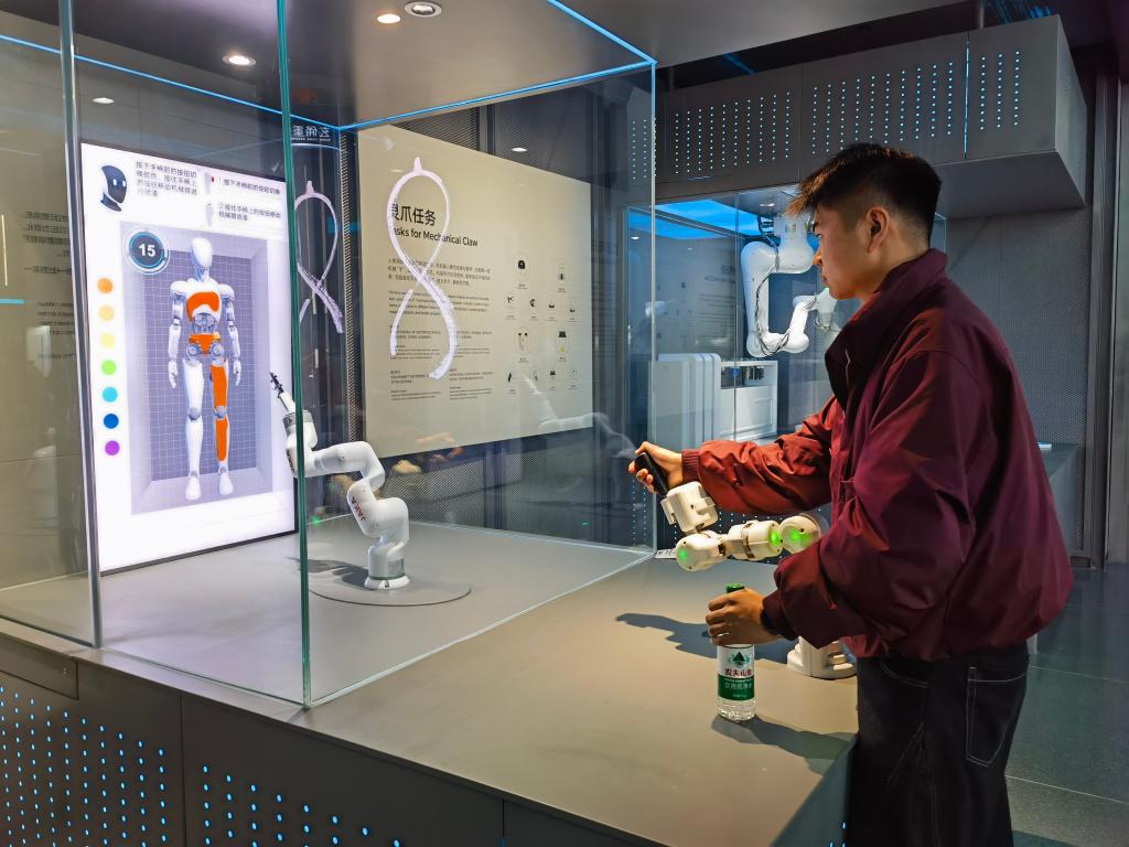 据了解,“明日行者”展区与国内外企业及科研机构深度合作,聚焦人工智能和机器人技术前沿,展示群智机器人、“脑机”产品等前沿科技成果。