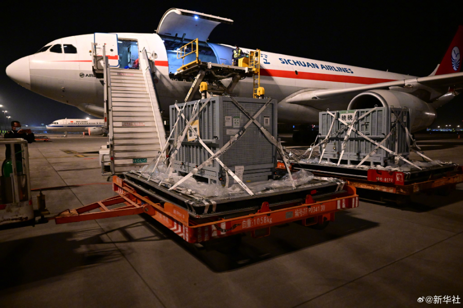 1月28日1时,我国旅居日本东京都恩赐上野动物园的大熊猫“晓晓”“蕾蕾”平安飞抵成都天府国际机场,随后于6时,顺利入住中国大熊猫保护研究中心雅安基地,接受隔离检疫。(记者:余里 薛晨 胥冰洁)