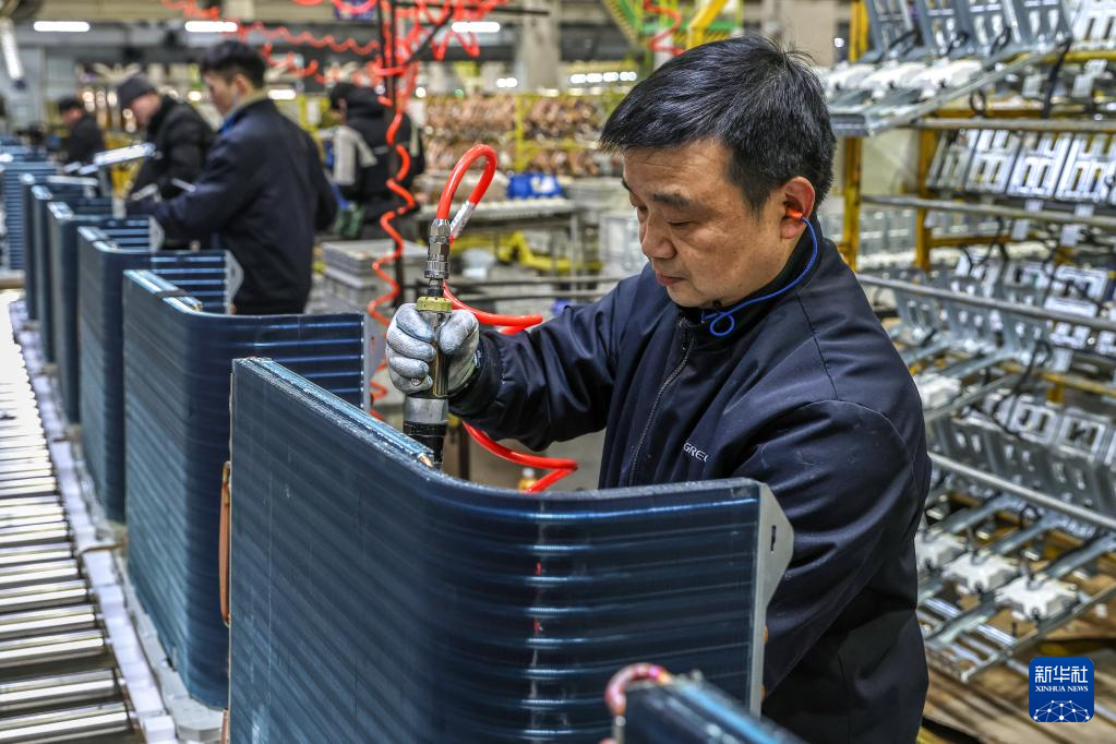 1月29日,在江苏省南京江宁高新技术产业开发区,工人在格力电器(南京)有限公司生产线上忙碌。