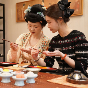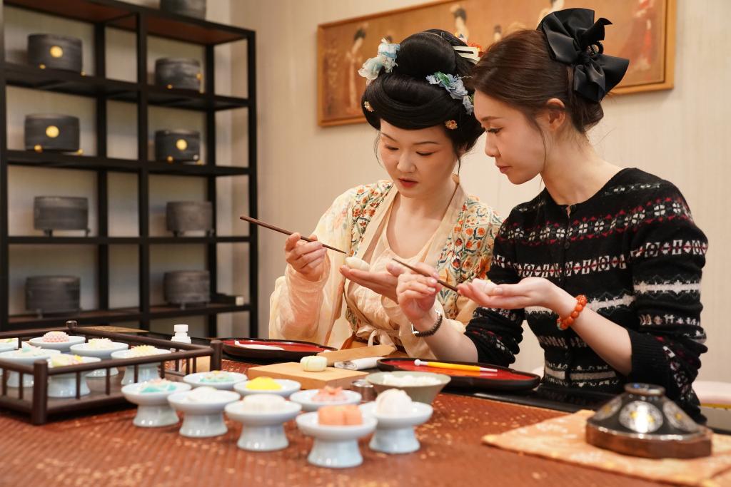 2026年1月9日,西安,一名爱好者跟随制果师学习制作唐果子。新华社记者 邵瑞 摄