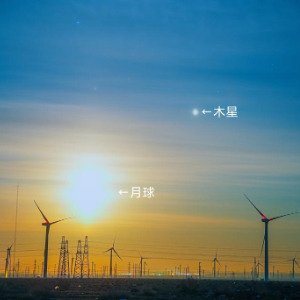 2026年1月4日,在新疆哈密拍摄的木星(右上)伴月。(王俊峰 摄)